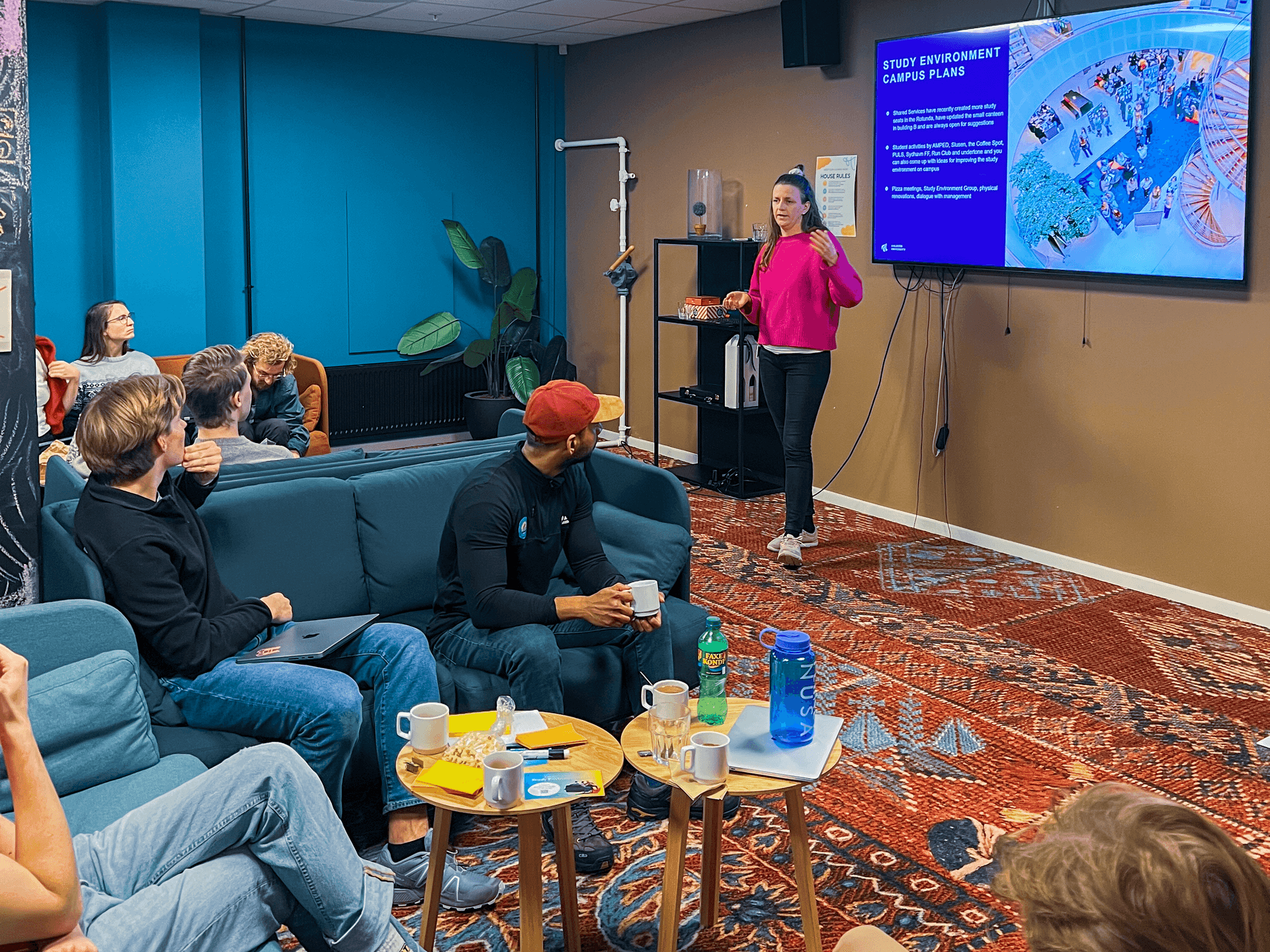 Efter en opsamling af workshoppen samt nuværende campusplaner ved studiemiljøkoordinator Sofie T. Hyllested, var det tid til en pause med kaffe og kage, inden dagen fortsatte med oplæg fra studenterorganisationerne.